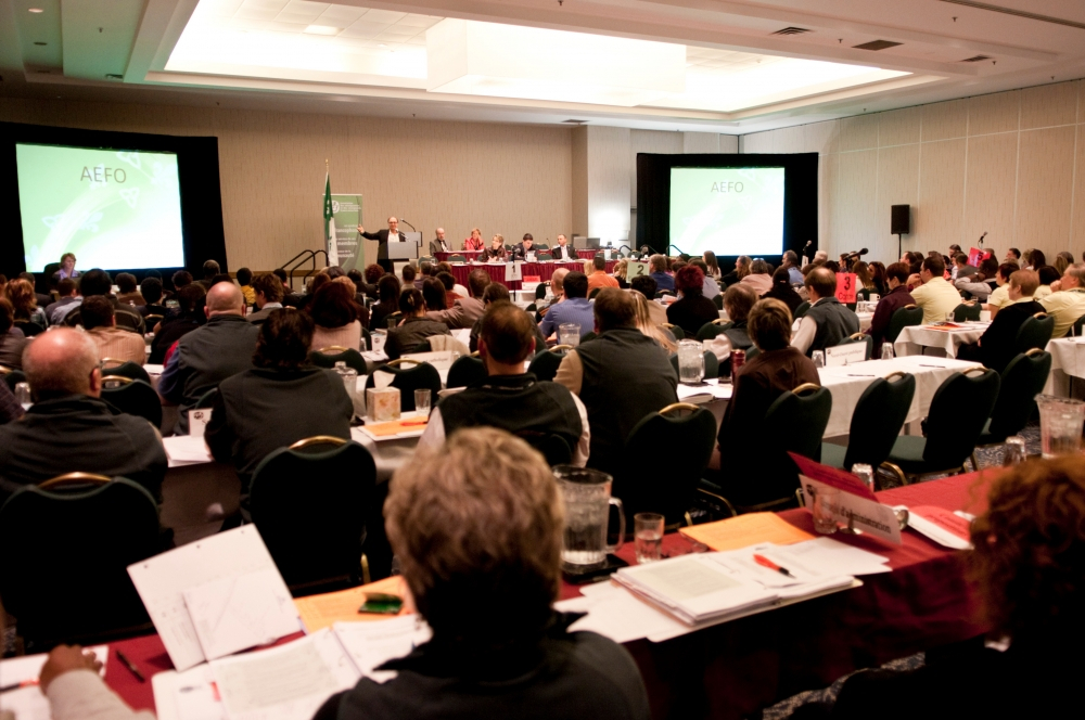 L’engagement politique de l’AEFO prend davantage d’ampleur pendant la campagne électorale de 2011. L’AEFO invite les trois principaux partis à prendre la parole au congrès spécial de mars 2011.