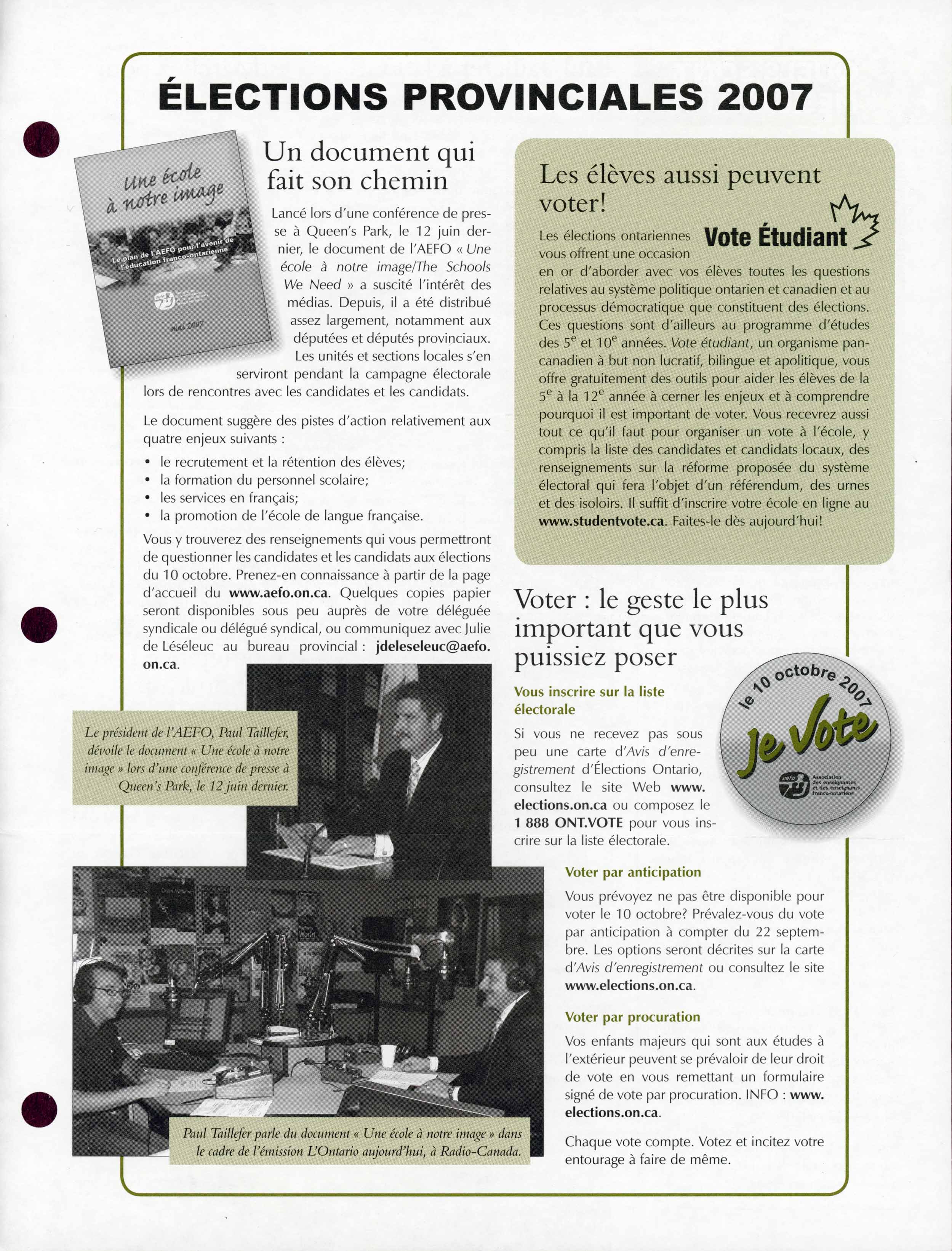 L’AEFO incite ses membres à voter pour les partis ou les individus favorables à l’éducation de langue française.